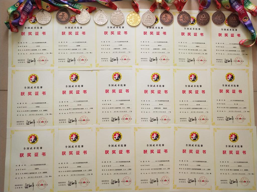武术队在2017年全国传统武术大赛中获得1金4银8铜