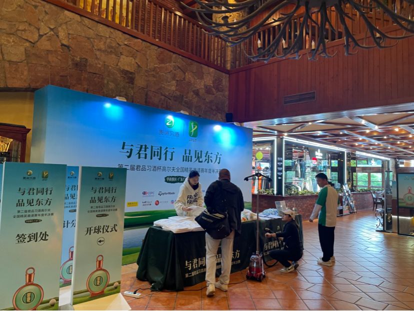 11月14日-15日第二届君品习酒杯高尔夫全国精英邀请赛年度半决赛在广州九龙湖高尔夫球会举行,体育健康公司应赛事主办方邀请,为本次赛事提供志愿者17人(包含赛事服务、酒店接待、物资管理、球包管理及场地摄影等岗位)。